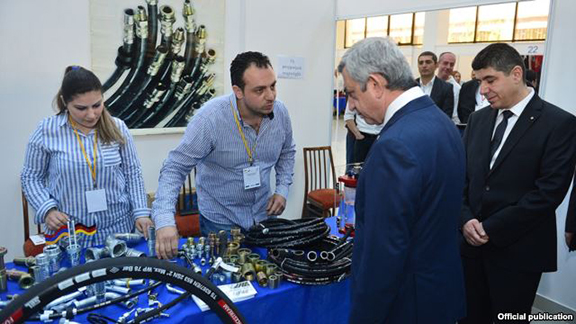 President Serzh Sarkisian visits an exhibition in Yerevan organized for firms owned by Syr