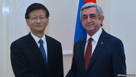 President Serzh Sarkisian meets with Meng Jianzhu, a member of the Chinese Community Party