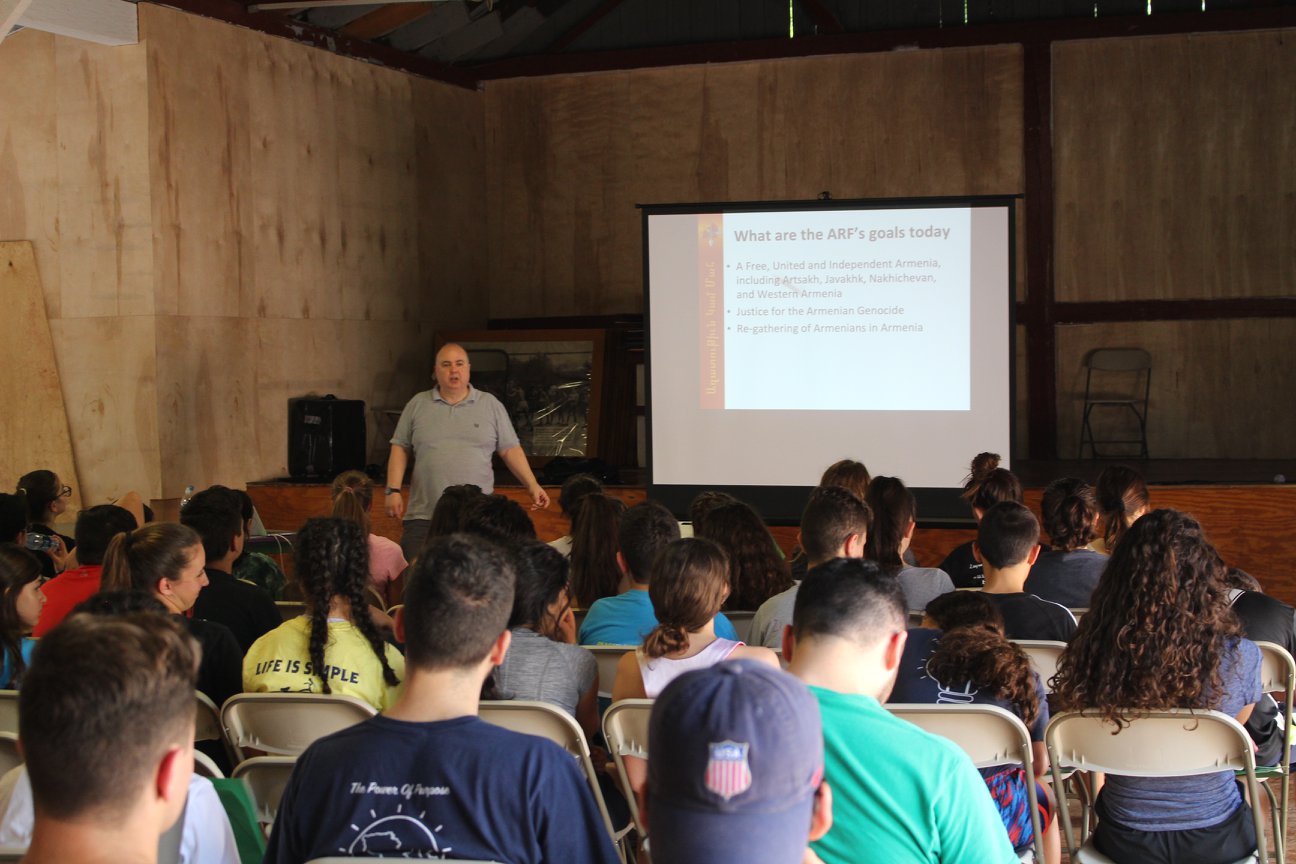On Saturday, participants split up into their lecture groups and participated in an educational program put together by the Junior Seminar Committee. The series of lectures included the following topics: Youth Leaders (unger Anto Avedissian); Progression of the Armenian Government (unger Dikran Kaligian); Armenian Women on the Front Lines (ungerouhi Yeghisapet Chouldjian); History of the AYF-YOARF (unger Ara Surenian); History of the Independence (unger Zohrab Khaligian); ARF’s Role Then and Now (unger Greg Bedian); Leadership Roles in the AYF Now (unger Phil Nigon); Hidden Leaders (unger George Aghjayan); and Leadership through the Armenian Weekly (Armenian Weekly assistant editor Karine Vann).
